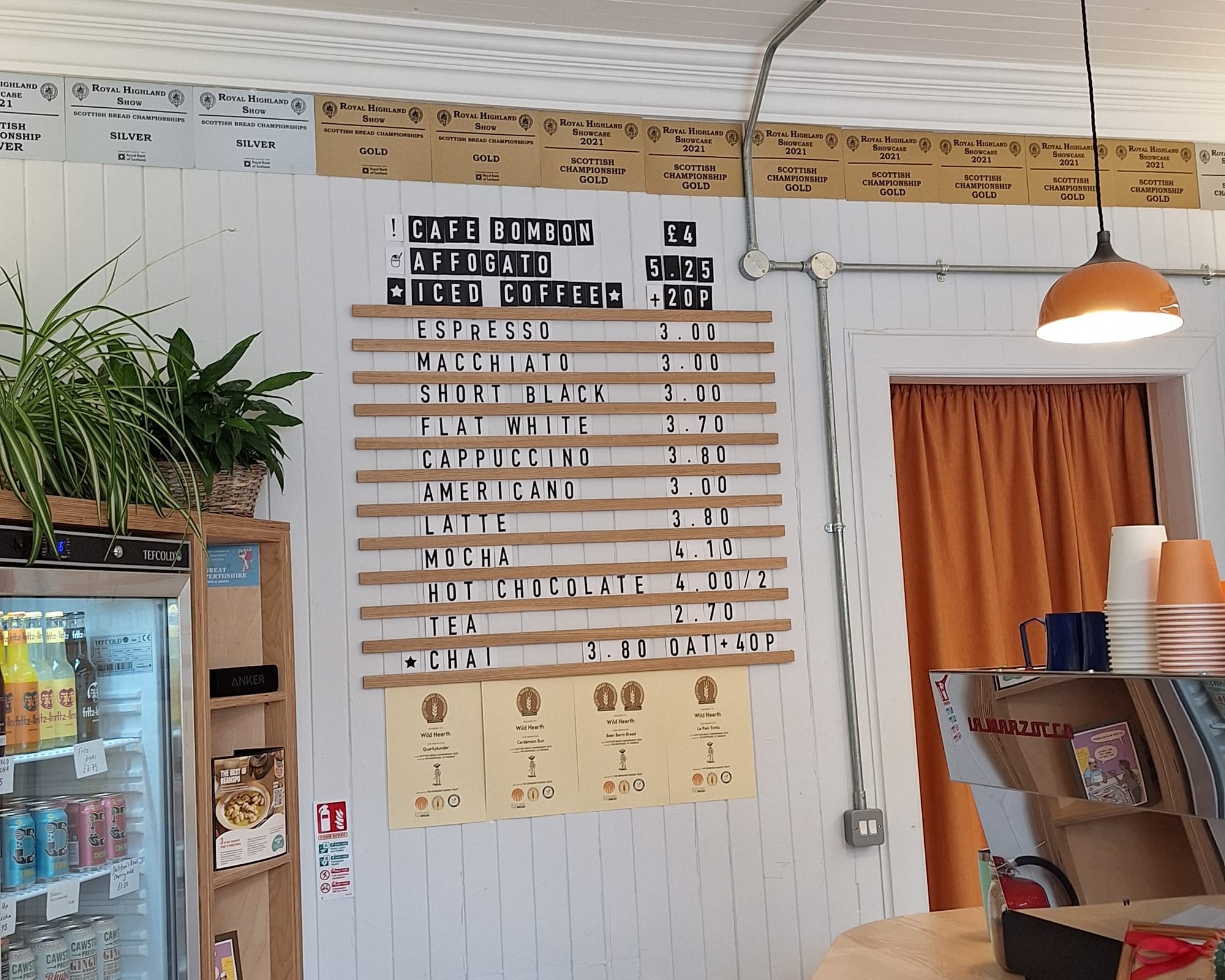 Co-owner Caroline chatted from behind the bar as she made our coffees. She explained that all the bread and pastries for sale are made at Cultybraggan Camp and brought over to the shop.
